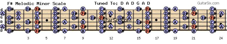d-a-d-g-a-d f# melodic minor scale for guitar