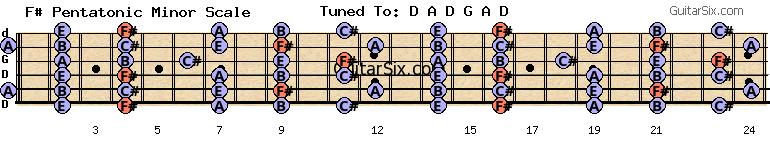 d-a-d-g-a-d f# pentatonic minor scale for guitar