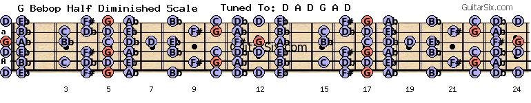 d-a-d-g-a-d g bebop half diminished scale for guitar