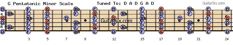 d-a-d-g-a-d g pentatonic minor scale for guitar