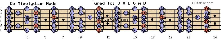 d-a-d-g-a-d gb db mixolydian mode for guitar