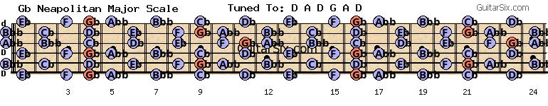 d-a-d-g-a-d gb neapolitan major scale for guitar