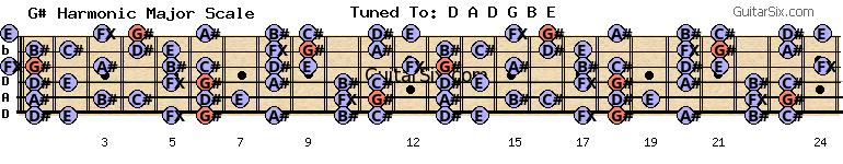 d-a-d-g-b-e g# harmonic major scale for guitar