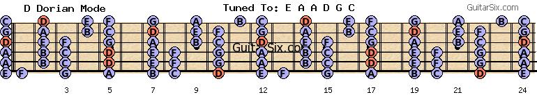 e-a-a-d-g-c c d dorian mode for guitar