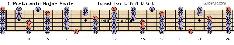 e-a-a-d-g-c c pentatonic major scale for guitar