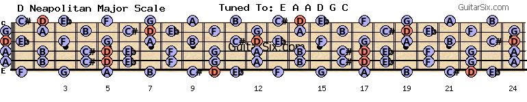 e-a-a-d-g-c d neapolitan major scale for guitar