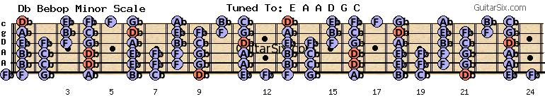 e-a-a-d-g-c db bebop minor scale for guitar