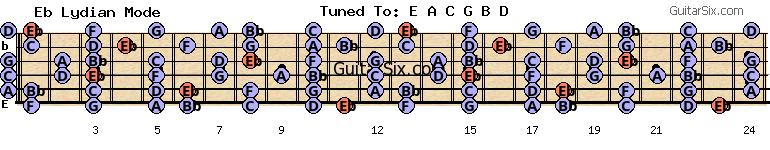 e-a-c-g-b-d bb eb lydian mode for guitar