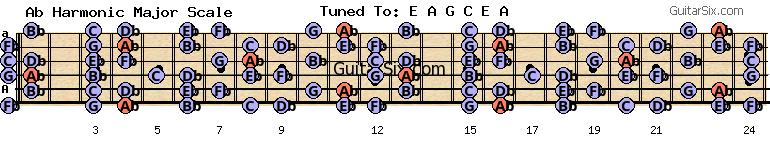 e-a-g-c-e-a ab harmonic major scale for guitar
