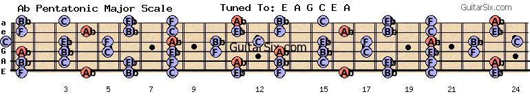 e-a-g-c-e-a ab pentatonic major scale for guitar