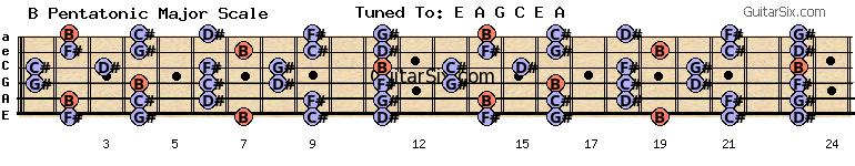 e-a-g-c-e-a b pentatonic major scale for guitar