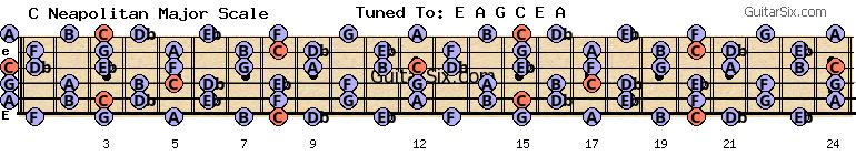 e-a-g-c-e-a c neapolitan major scale for guitar
