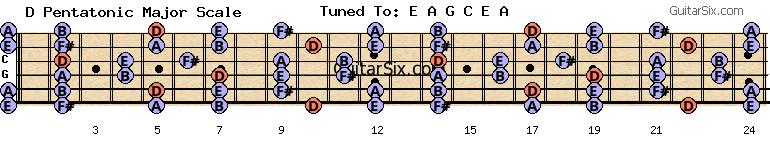 e-a-g-c-e-a d pentatonic major scale for guitar