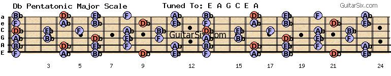 e-a-g-c-e-a db pentatonic major scale for guitar