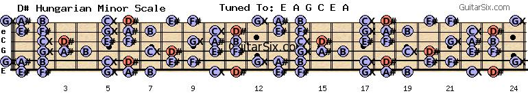 e-a-g-c-e-a d# hungarian minor scale for guitar