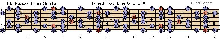 e-a-g-c-e-a eb neapolitan scale for guitar