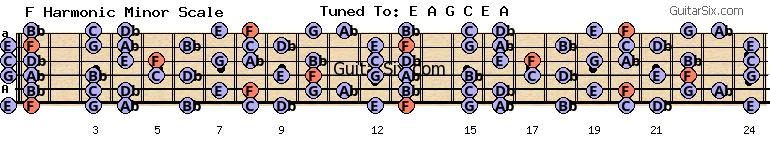 e-a-g-c-e-a f harmonic minor scale for guitar