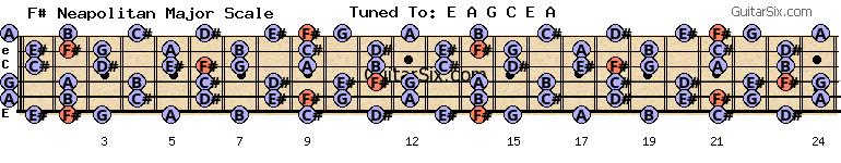 e-a-g-c-e-a f# neapolitan major scale for guitar