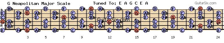 e-a-g-c-e-a g neapolitan major scale for guitar