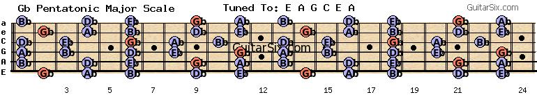e-a-g-c-e-a gb pentatonic major scale for guitar