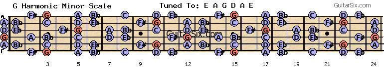 e-a-g-d-a-e g harmonic minor scale for guitar