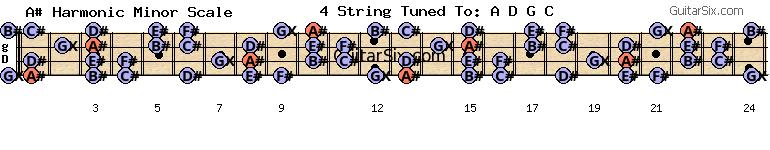 b-e-a-d-g-c a# harmonic minor scale for guitar