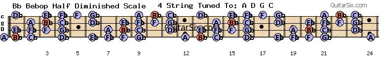 b-e-a-d-g-c bb bebop half diminished scale for guitar