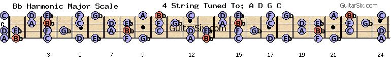 b-e-a-d-g-c bb harmonic major scale for guitar