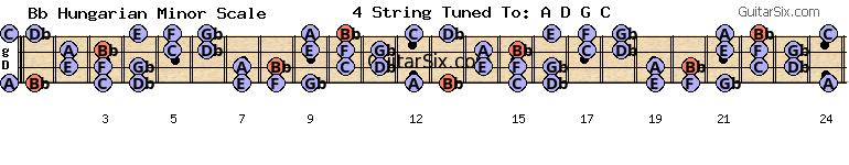 b-e-a-d-g-c bb hungarian minor scale for guitar