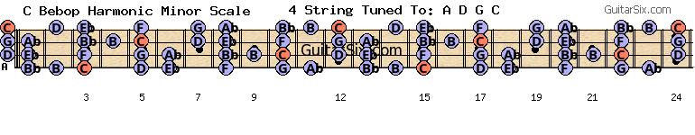 b-e-a-d-g-c c bebop harmonic minor scale for guitar