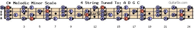 b-e-a-d-g-c c# melodic minor scale for guitar