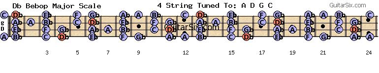 b-e-a-d-g-c db bebop major scale for guitar