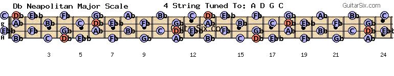 b-e-a-d-g-c db neapolitan major scale for guitar