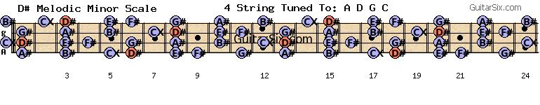 b-e-a-d-g-c d# melodic minor scale for guitar
