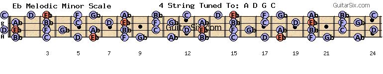 b-e-a-d-g-c eb melodic minor scale for guitar