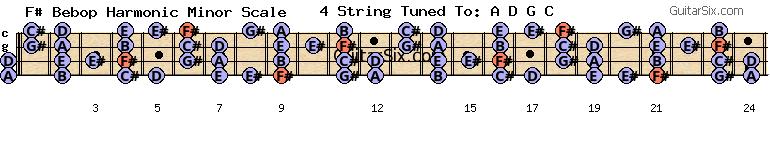 b-e-a-d-g-c f# bebop harmonic minor scale for guitar