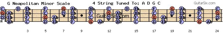 b-e-a-d-g-c g neapolitan minor scale for guitar