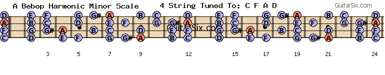 c-g-c-f-a-d a bebop harmonic minor scale for guitar