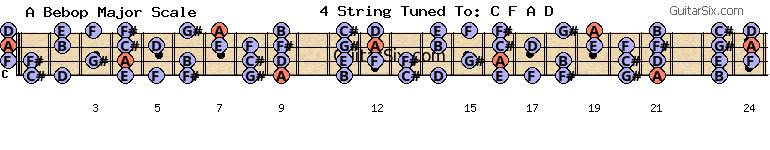 c-g-c-f-a-d a bebop major scale for guitar