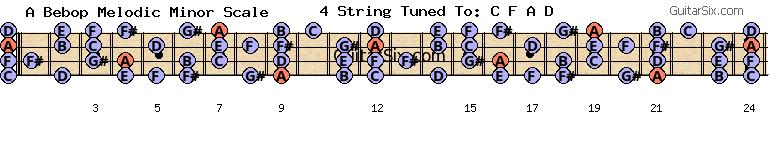 c-g-c-f-a-d a bebop melodic minor scale for guitar