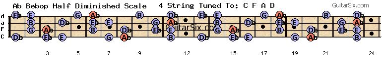 c-g-c-f-a-d ab bebop half diminished scale for guitar