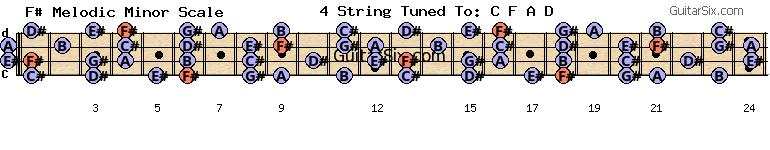 c-g-c-f-a-d f# melodic minor scale for guitar