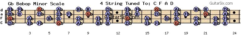 c-g-c-f-a-d gb bebop minor scale for guitar