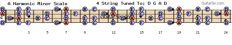 d-a-d-g-a-d a harmonic minor scale for guitar
