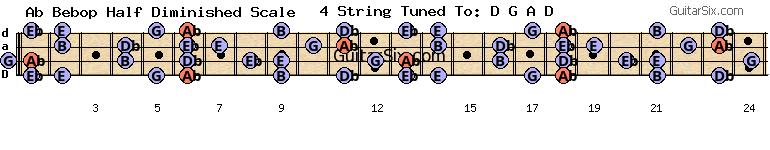 d-a-d-g-a-d ab bebop half diminished scale for guitar