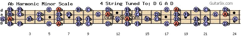 d-a-d-g-a-d ab harmonic minor scale for guitar