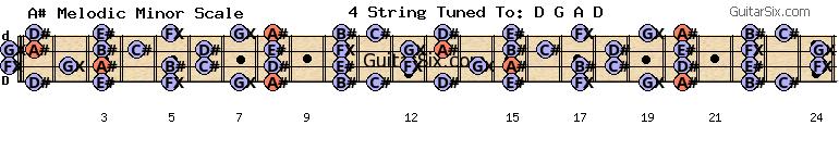 d-a-d-g-a-d a# melodic minor scale for guitar