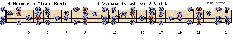 d-a-d-g-a-d b harmonic minor scale for guitar