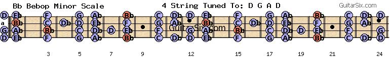 d-a-d-g-a-d bb bebop minor scale for guitar