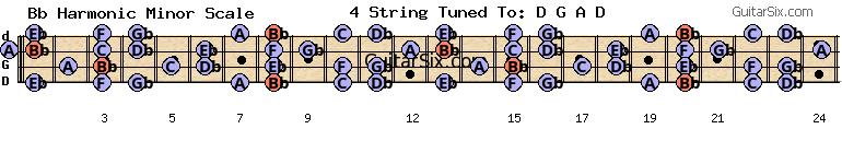 d-a-d-g-a-d bb harmonic minor scale for guitar